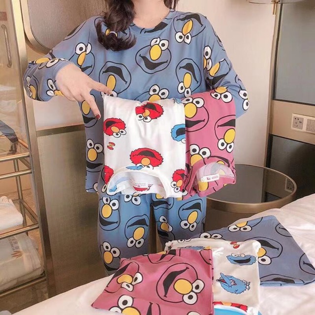 Elmo Sesamee New Version Pyjamas Baju Tidur Wanita Viral Shopee Malaysia