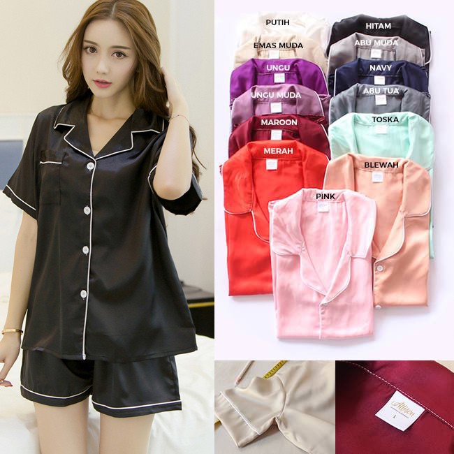 Jual Baju Tidur Piyama Wanita Satin Lengan Celana Pendek Import Jakarta Pusat Axis Olshop Tokopedia