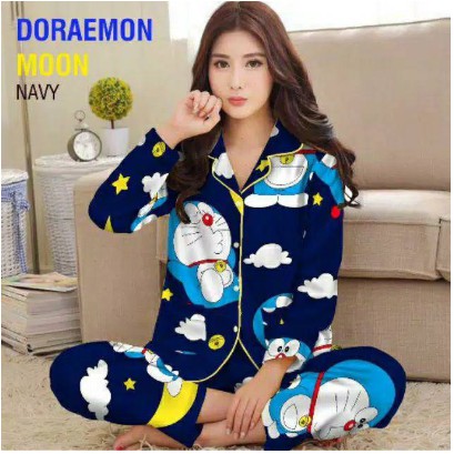 Baju Tidur Piyama Doraemon Navy Lengan Panjang Shopee Indonesia