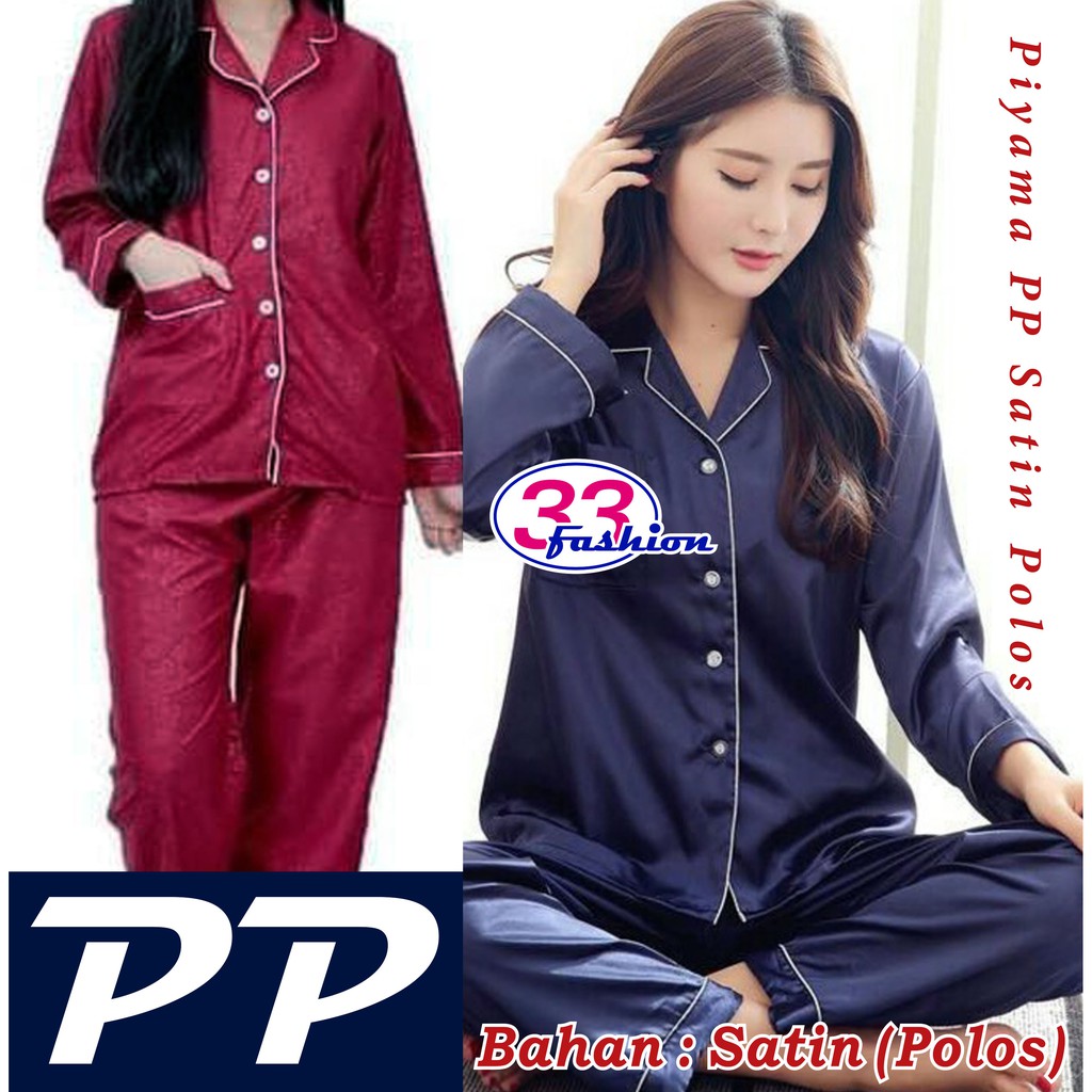 Pp Dewasa Piyama Setelan Baju Tidur Murah Lengan Panjang Wanita Cewek Katun Satin Polos Shopee Indonesia